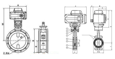 電動(dòng)法蘭軟密封蝶閥結(jié)構(gòu) 電動(dòng)對(duì)夾式軟密封蝶閥結(jié)構(gòu) |